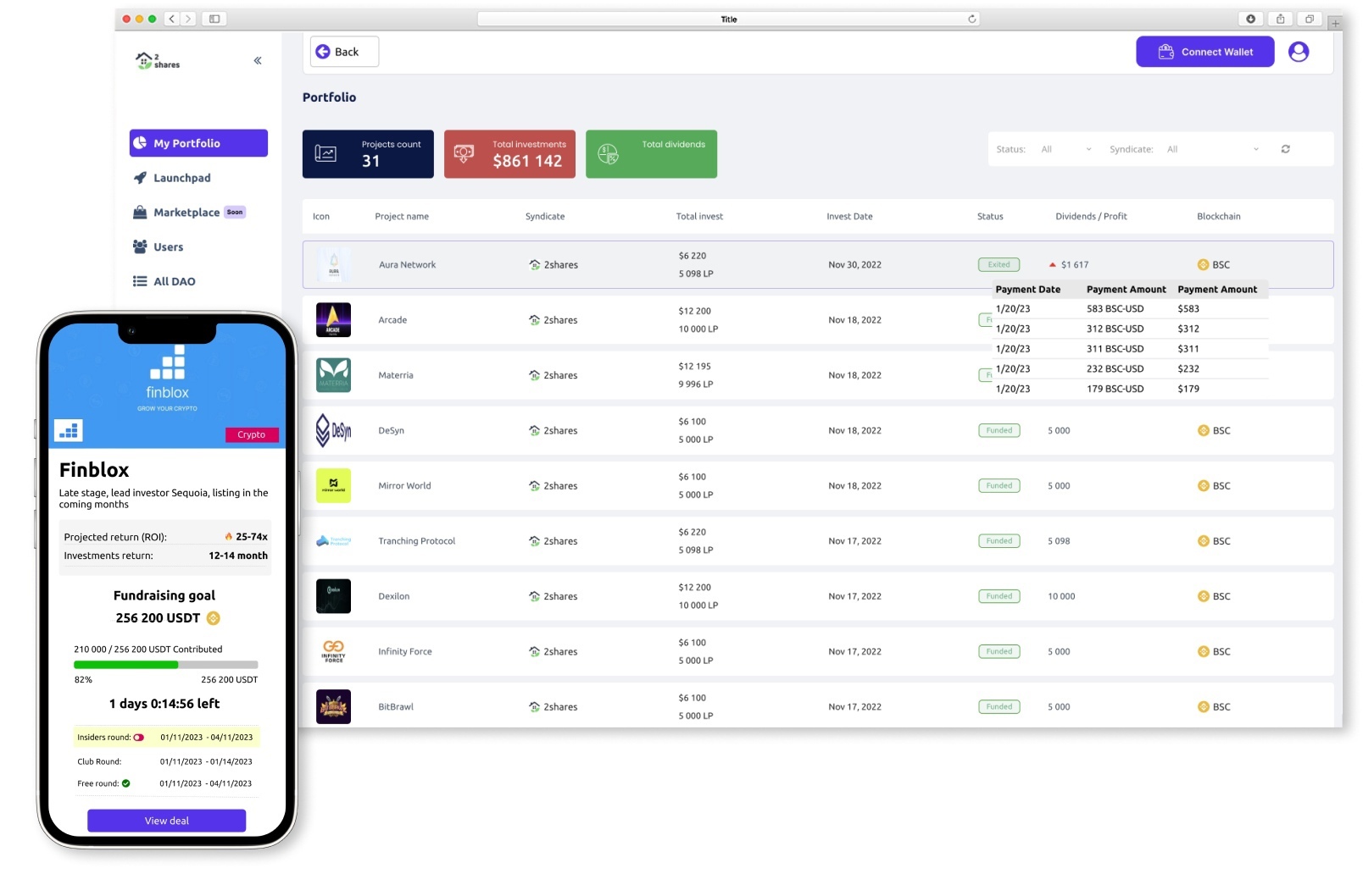 Tokenization allows you to enter transactions with top funds starting from $ 10, thanks to investment syndicates, investors unite in pools (partnerships) and buy out large projects.